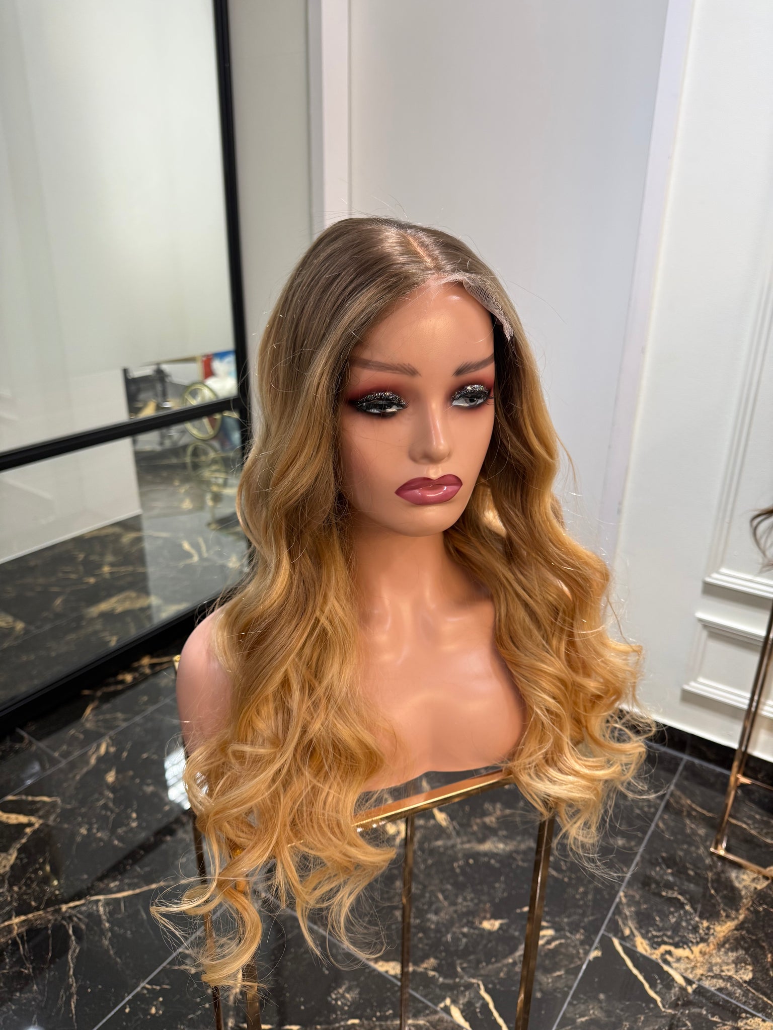Diese exklusive Echthaar-Perücke mit 5×5 Lace-Bereich besticht durch ihre edle Blonde-Balayage-Färbung mit weichen, natürlichen Farbverläufen. Der feine Lace-Bereich sorgt für einen realistischen Haaransatz und ermöglicht einen frei wählbaren Scheitel für individuelles Styling.